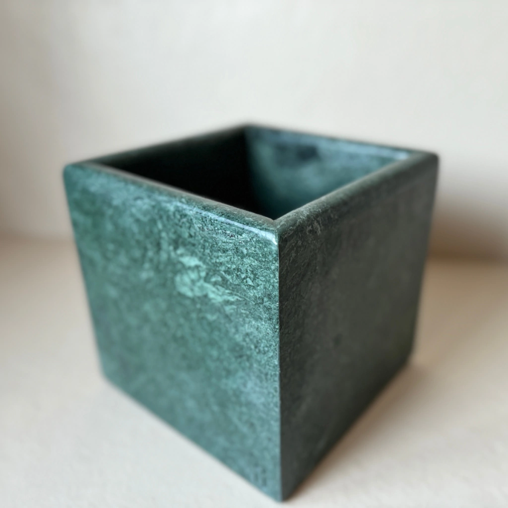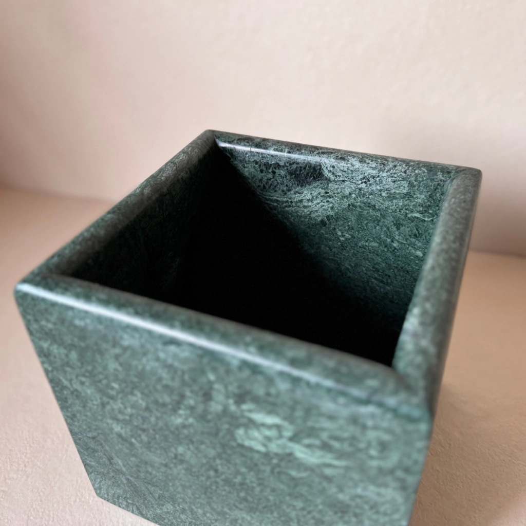 Renove sua decoração com a beleza natural do Cachepot Aquila em Mármore Verde Guatemala Polido.