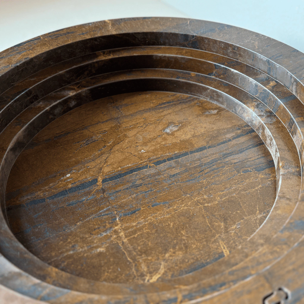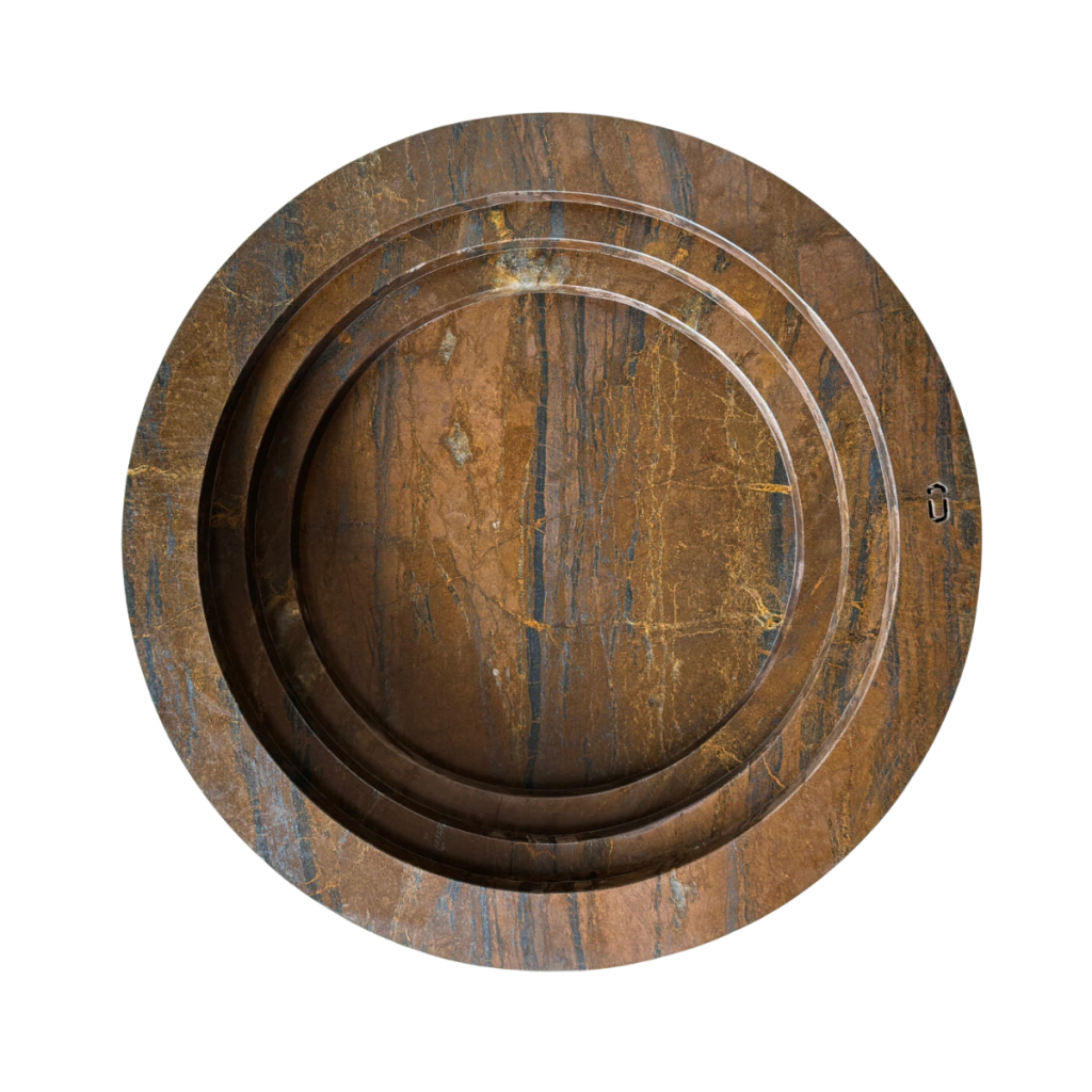 A Fruteira Pisa Circular em Quartzito Bronzita Vintage é uma peça sofisticada que combina funcionalidade e elegância. Produzida com quartzito bronzita, uma pedra natural de tonalidade marrom com veios únicos, esta fruteira adiciona um toque rústico e refinado à decoração.