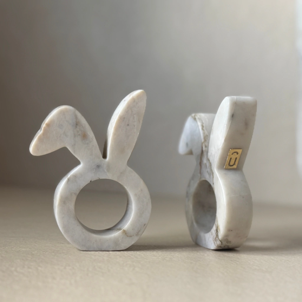 Apresentamos o Kit com 4 Porta-Guardanapos Orelha em Mármore Calacatta Milano Polido (10x5,7cm), uma combinação perfeita de funcionalidade e elegância para a sua mesa.