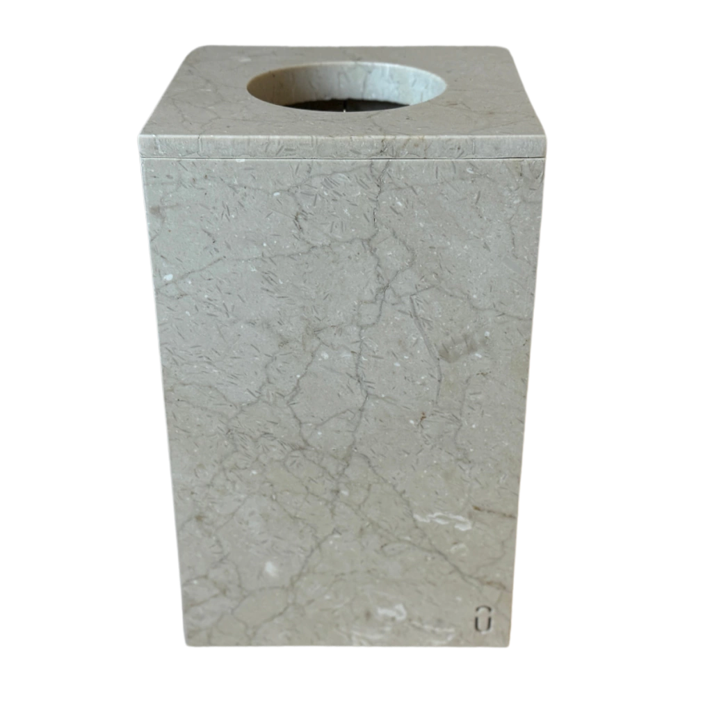 Eleve a sofisticação do seu ambiente com a Lixeira para Lavabo em Mármore Crema Marfil Standard Polido. Com dimensões compactas e elegantes de 28x18cm, esta peça combina a funcionalidade indispensável à beleza natural do mármore, proporcionando um toque de luxo e exclusividade ao seu lavabo ou banheiro.