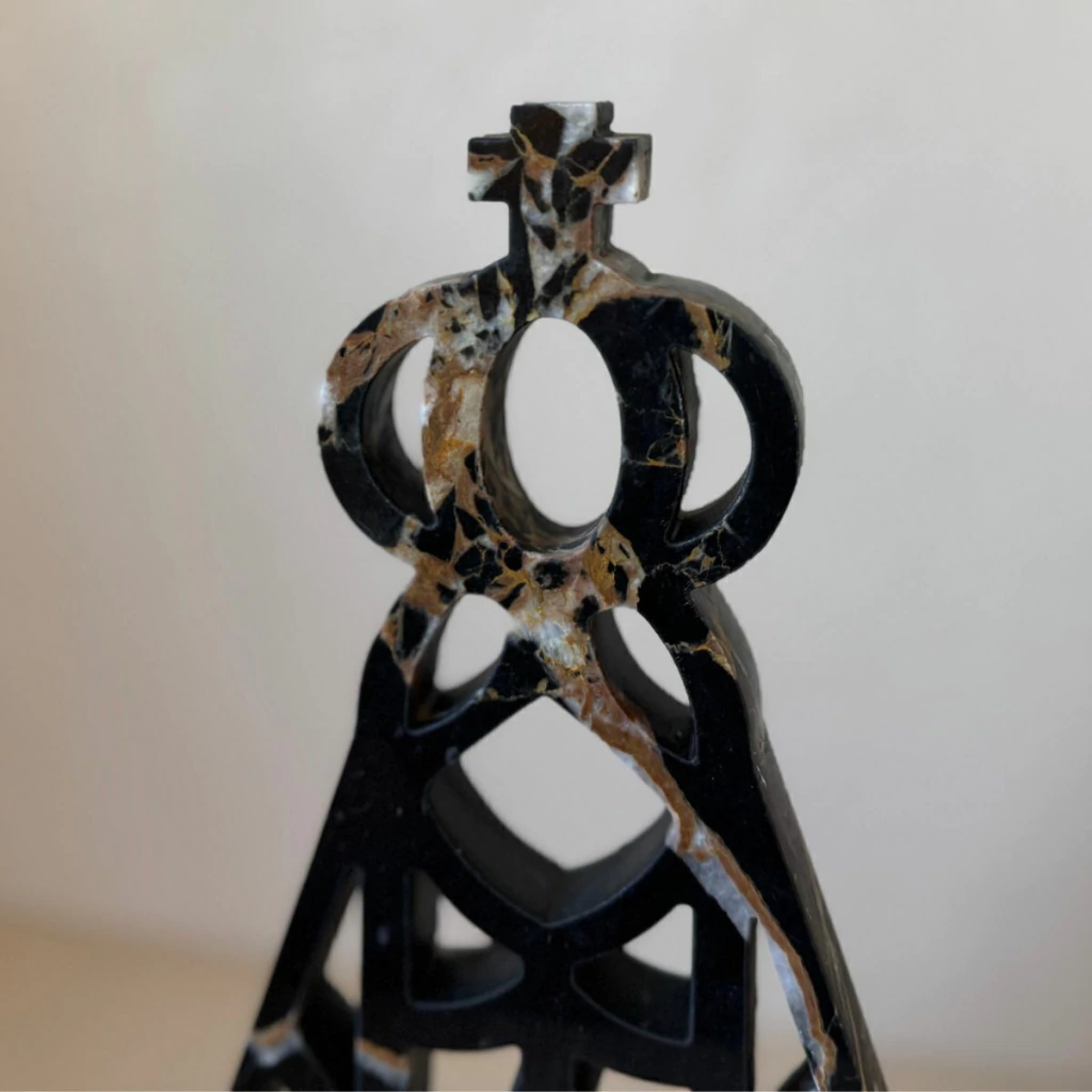 A Escultura de Nossa Senhora Aparecida em Mármore Nero Portoro Polido é a união de devoção e sofisticação. Esculpida em mármore de tonalidade branca pura com acabamento polido, destaca a beleza natural da pedra e confere um toque de elegância atemporal à peça.