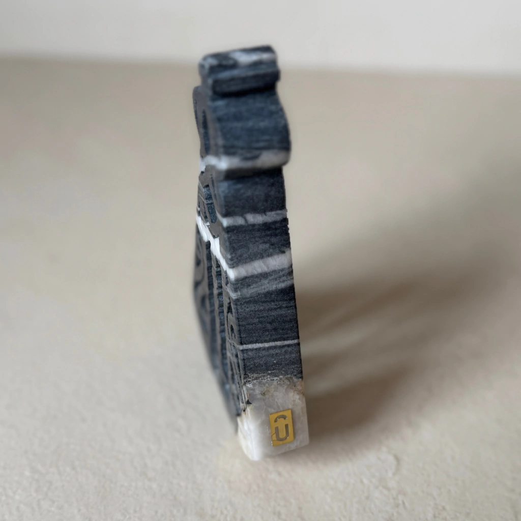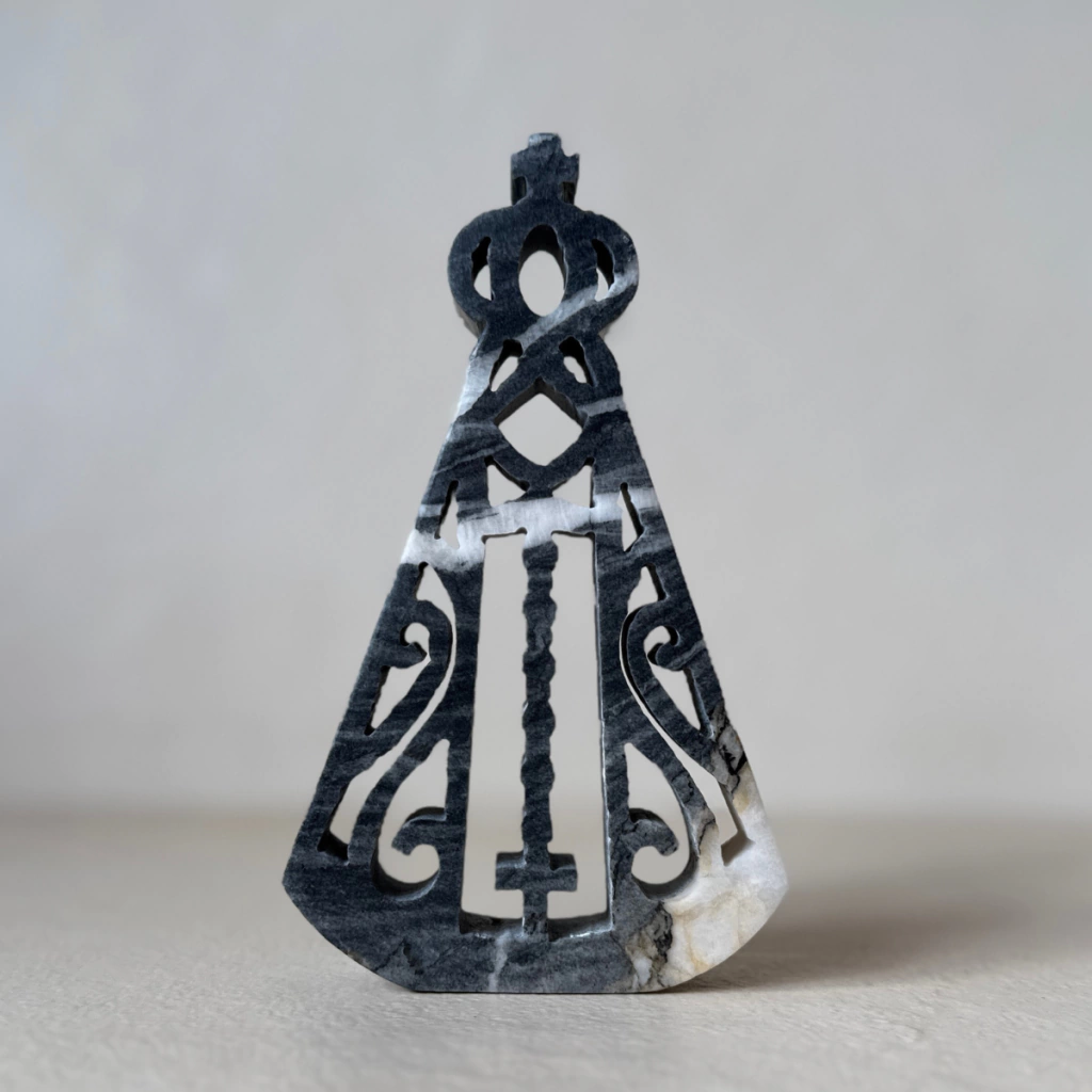 A Escultura de Nossa Senhora Aparecida em Quartzito Maori Polido une fé e elegância em uma peça exclusiva. Esculpida em quartzito de contrastes naturais entre cinza escuro e branco, com acabamento polido que valoriza o brilho da pedra, destaca sua beleza autêntica e confere sofisticação e espiritualidade ao ambiente.