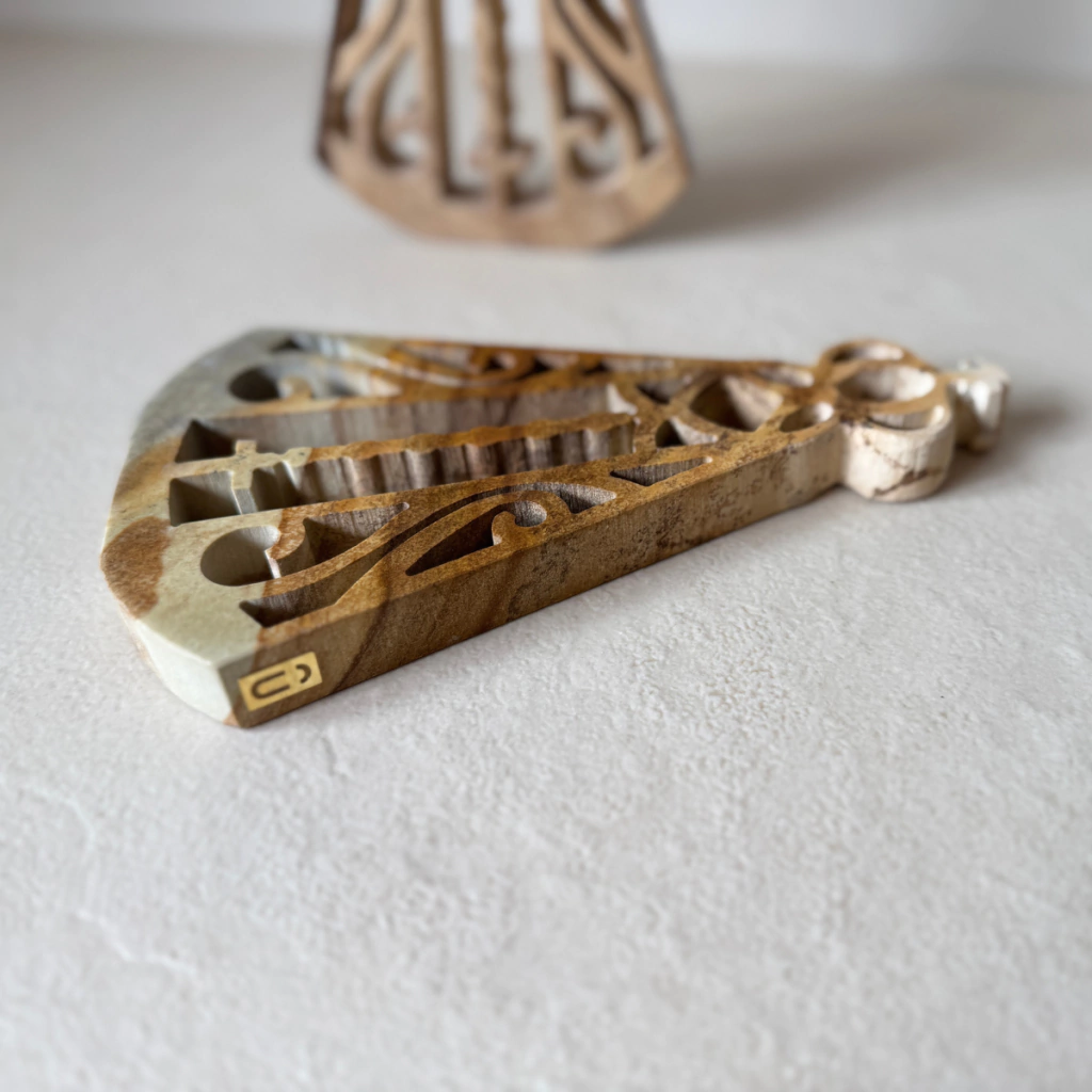 A Escultura de Nossa Senhora Aparecida em Quartzito Roma Imperiale Vintage é uma peça que une fé e beleza em um design único. Esculpida em quartzito de tons dourados e acabamento vintage, destaca as nuances e texturas naturais da pedra, transmitindo um toque de sofisticação e espiritualidade.