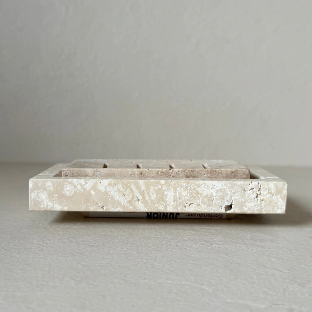 A Saboneteira com Rebaixo Italiano em Mármore Travertino Romano Bruto Vintage é uma peça que combina elegância e funcionalidade, ideal para aprimorar a decoração de banheiros e lavabos sofisticados. Confeccionada em mármore travertino romano bruto, esta saboneteira destaca-se por sua durabilidade e resistência, características inerentes a esse tipo de material.