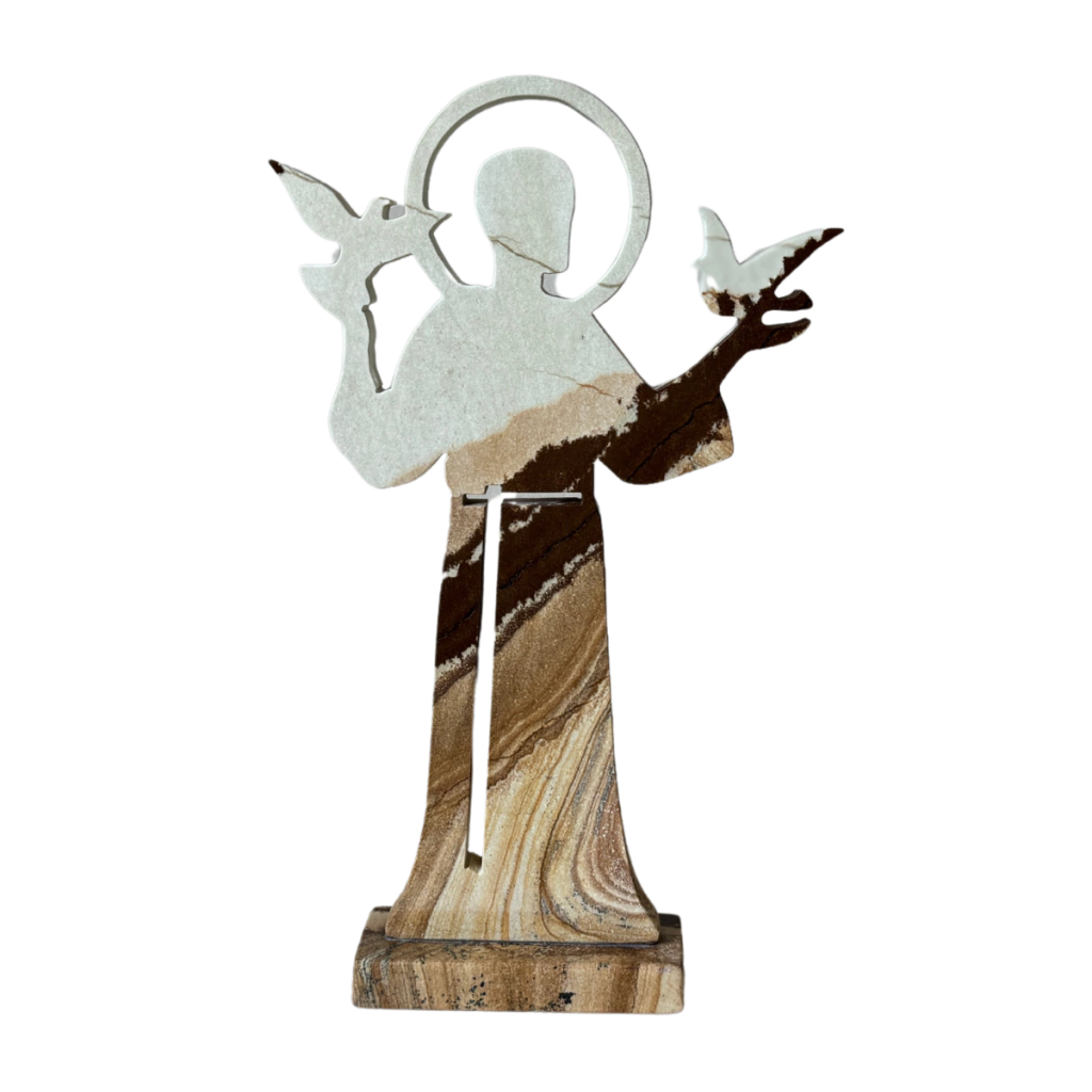 A beleza e a espiritualidade se unem nesta imponente imagem de São Francisco de Assis, esculpida em Quartzito Roma Imperiale Vintage. Com 38 cm de altura e 10,5 cm de largura, esta peça transmite serenidade e sofisticação, perfeita para compor ambientes de oração e decoração.