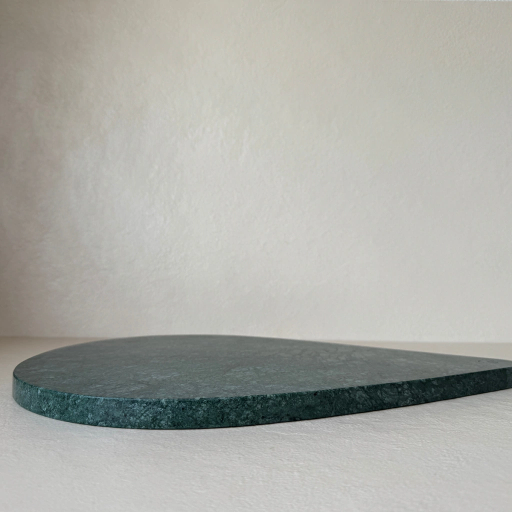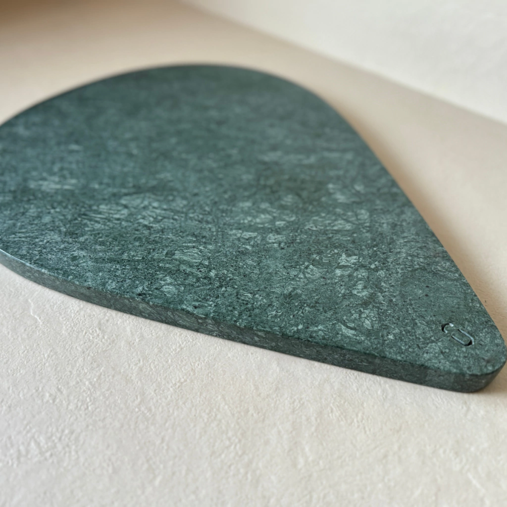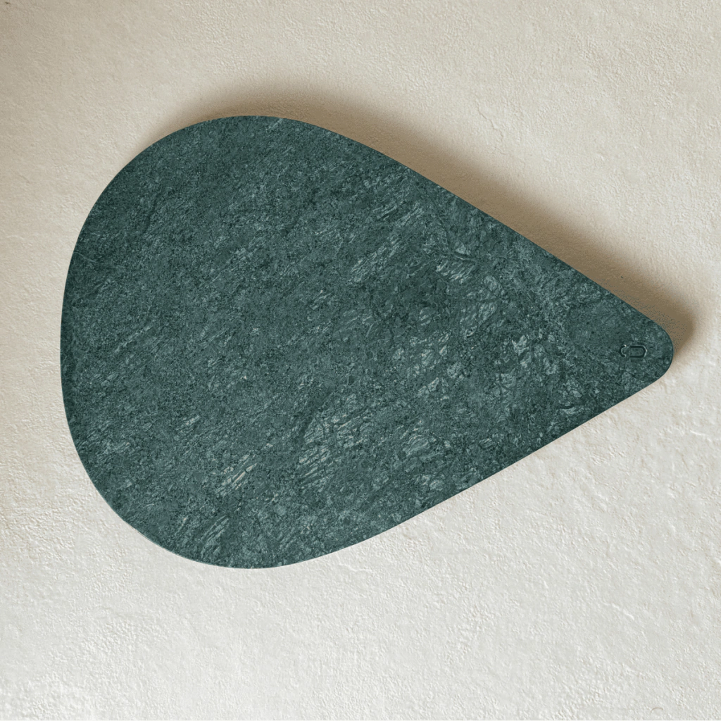 Apresentamos a Tábua Gota em Mármore Verde Guatemala Polido, uma peça que une funcionalidade e sofisticação para elevar a apresentação dos seus pratos.