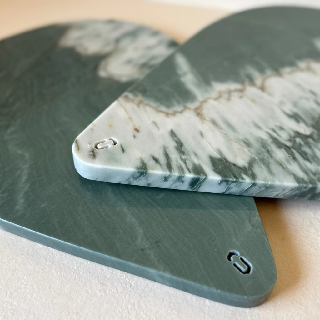 Apresentamos a Tábua Gota em Quartzito Tropical Green Polido, um item que une sofisticação e funcionalidade para transformar suas experiências gastronômicas.